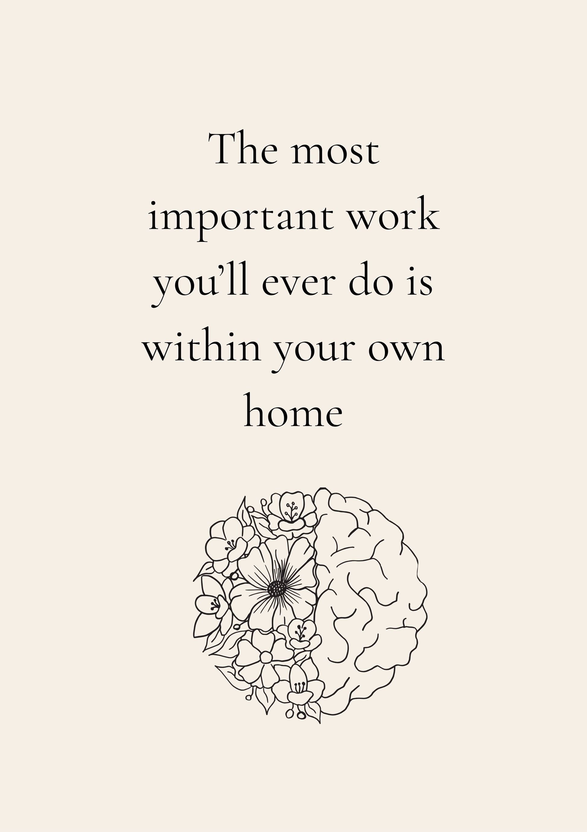 Celebrate the calling of homemaking and spiritual influence with this “The Most Important Work Is Within Your Own Home” printable wall art. With a minimalist floral-brain illustration and neutral background, this meaningful design gently reminds us of the God-given significance of raising children, cultivating peace, and creating a home filled with truth and grace.